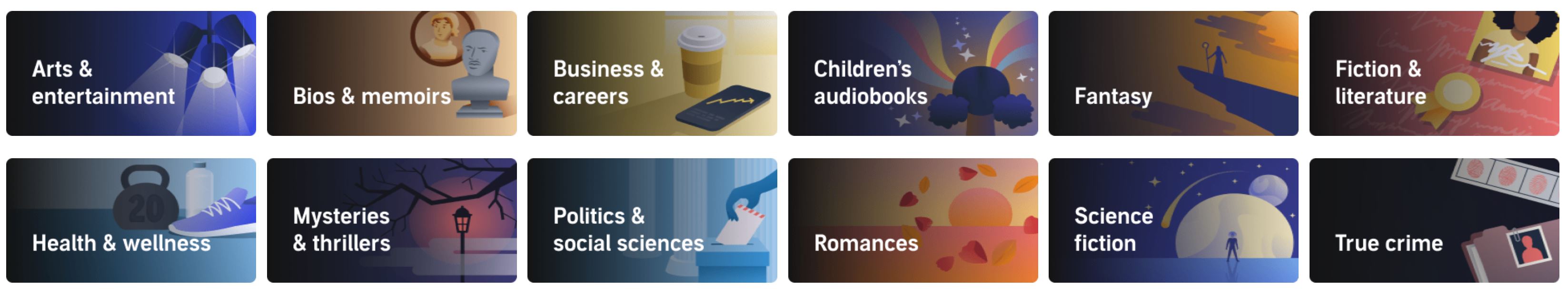 As you can see, whatever category you’re looking for, you’ll find it on Audiobook.